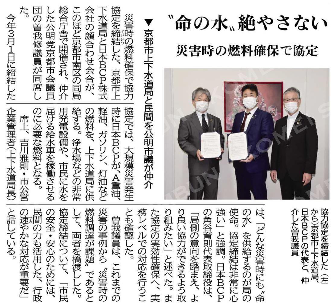 この度、京都市上下水道局さまと災害時燃料確保協定を締結させて頂きました。