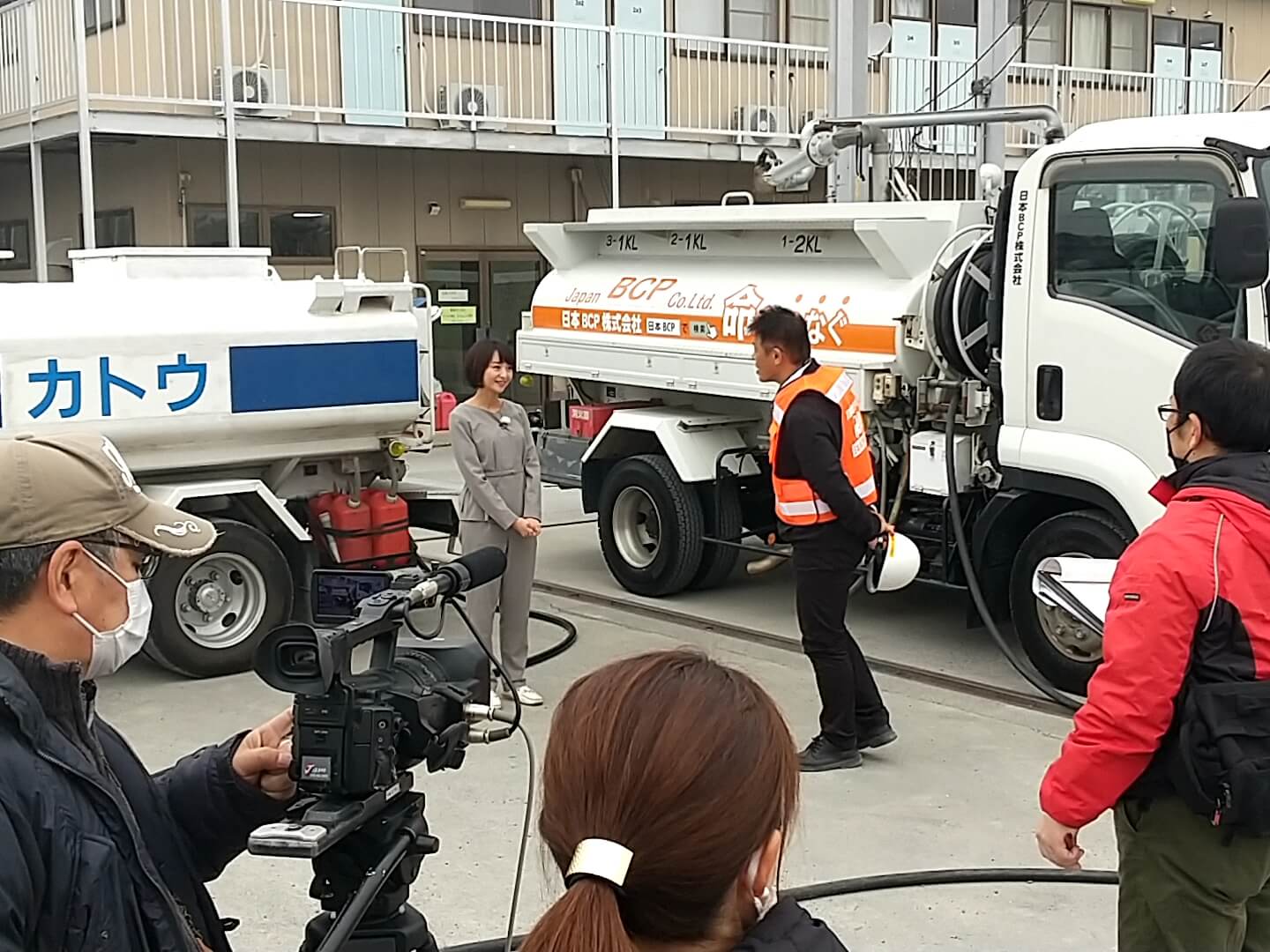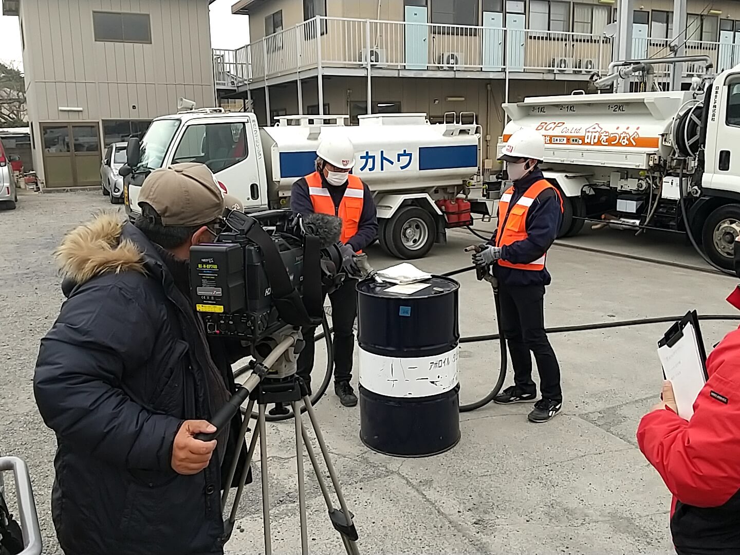 これは、千葉テレビ放送制作の「防災特別番組」の中で「ライフラインの確保の視点から」というテーマに対し、弊社の「緊急時燃料供給事業」を取り上げたいとの申し出を受け、取材に応じたものです。