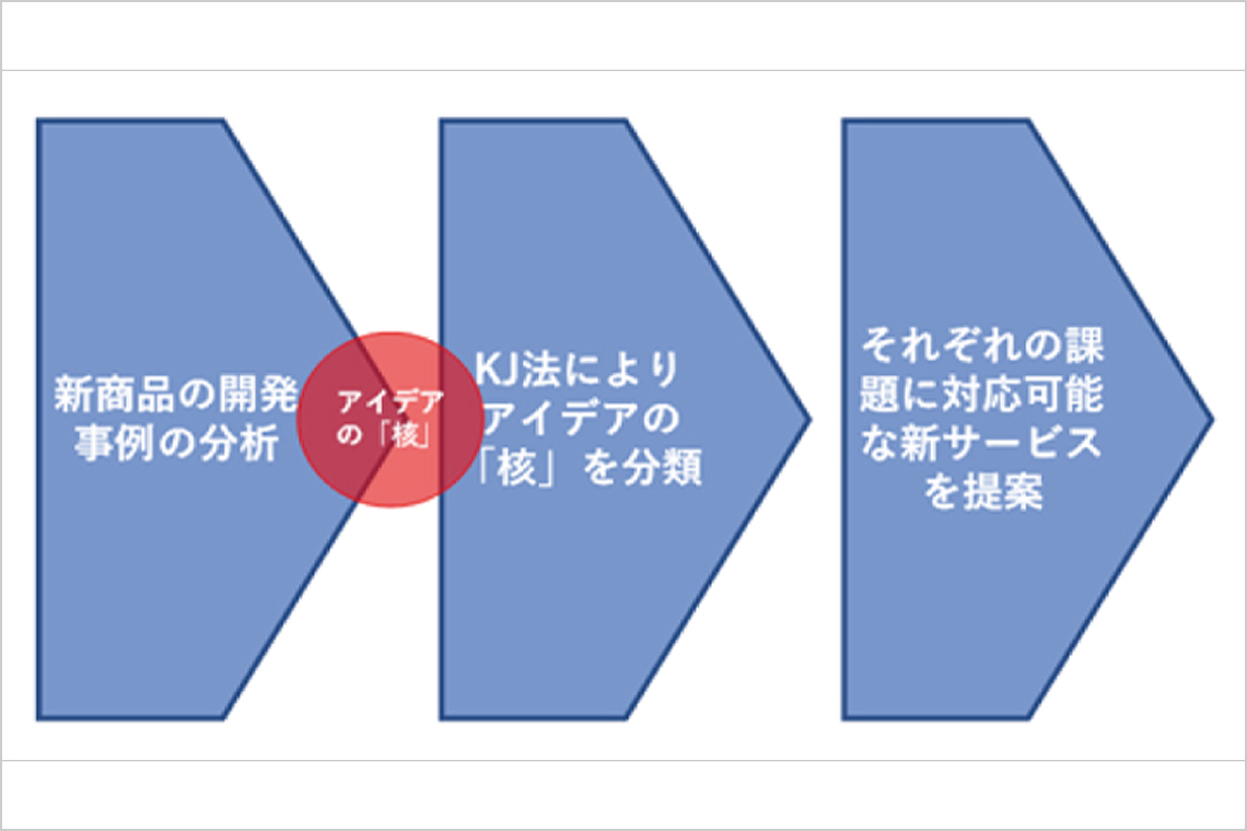 防災サービス企業においては、常時の業務と、災害発生などの非常時の業務をバランスよく構成しておくことが重要となります。そこで、様々な新商品の開発事例の特徴を分析し、それぞれのアイデアの「核」を抽出することで、防災サービス企業それぞれの課題に対応可能な新サービスを検討しています。 -