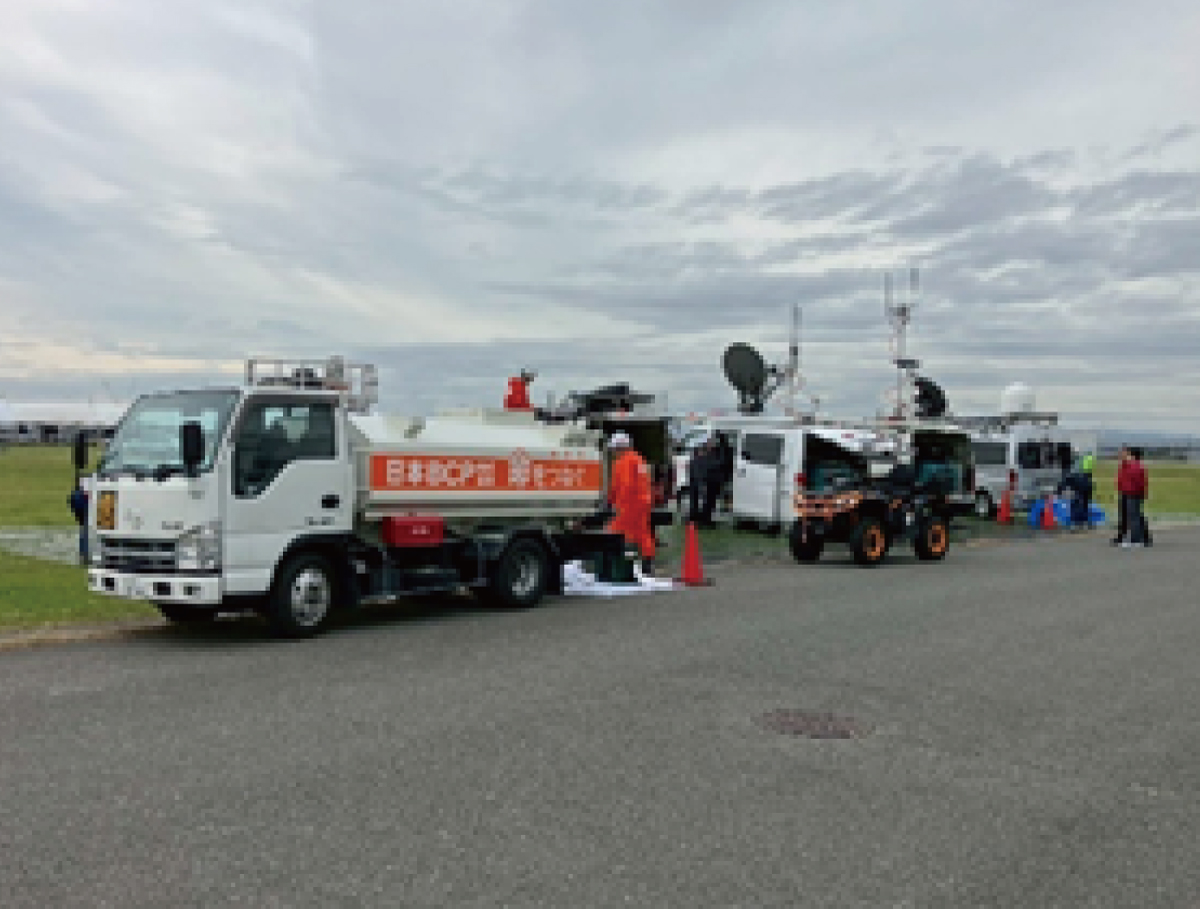 タンクローリーと指揮車両に加え、今回は能登半島地震でのライフライン復旧のために活躍したバギーも使い、訓練実施をいたしました。初めて一般に公開させていただいたことから、多くの方から現場で質問もいただき、災害現場での活動を理解いただけたと感じました。