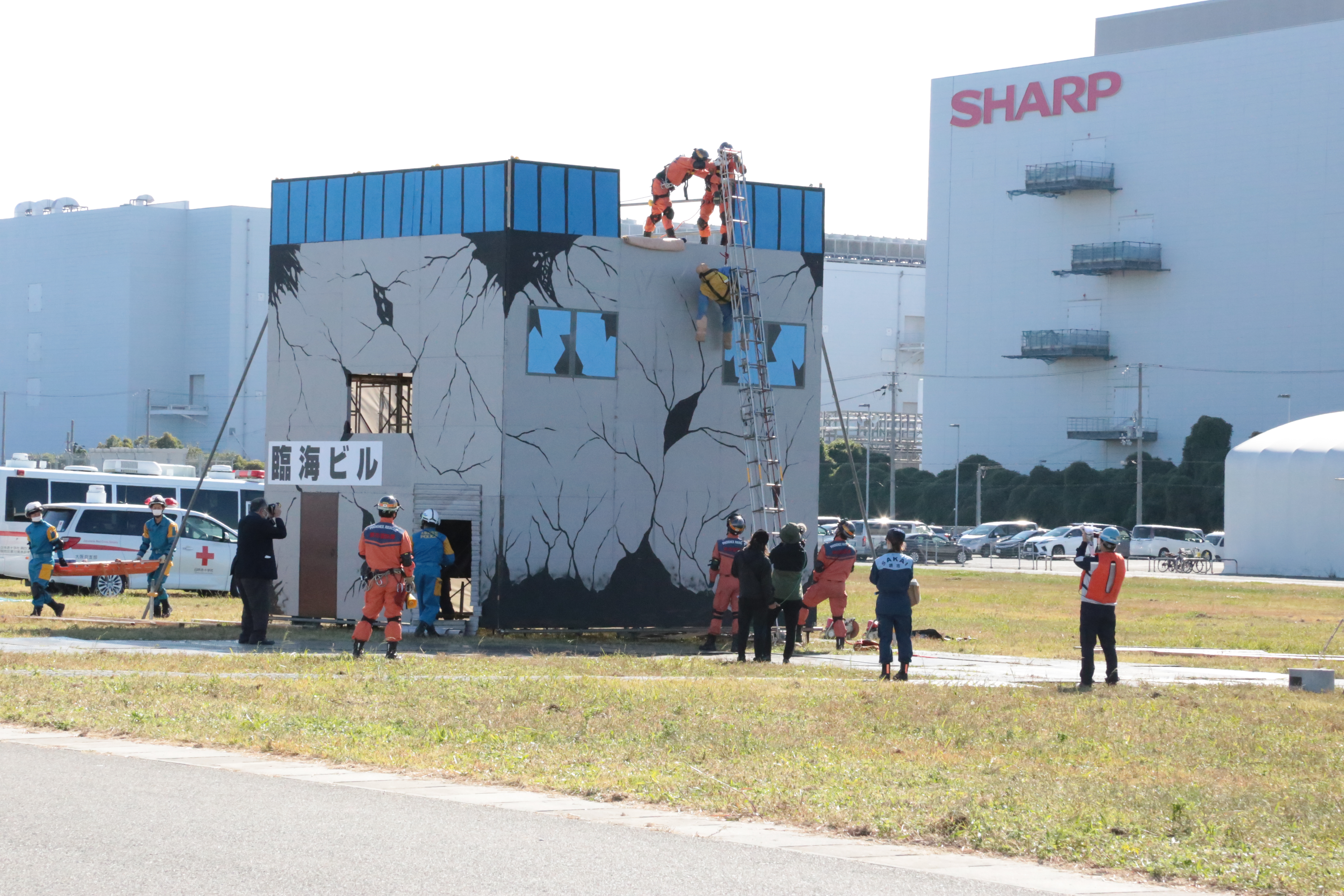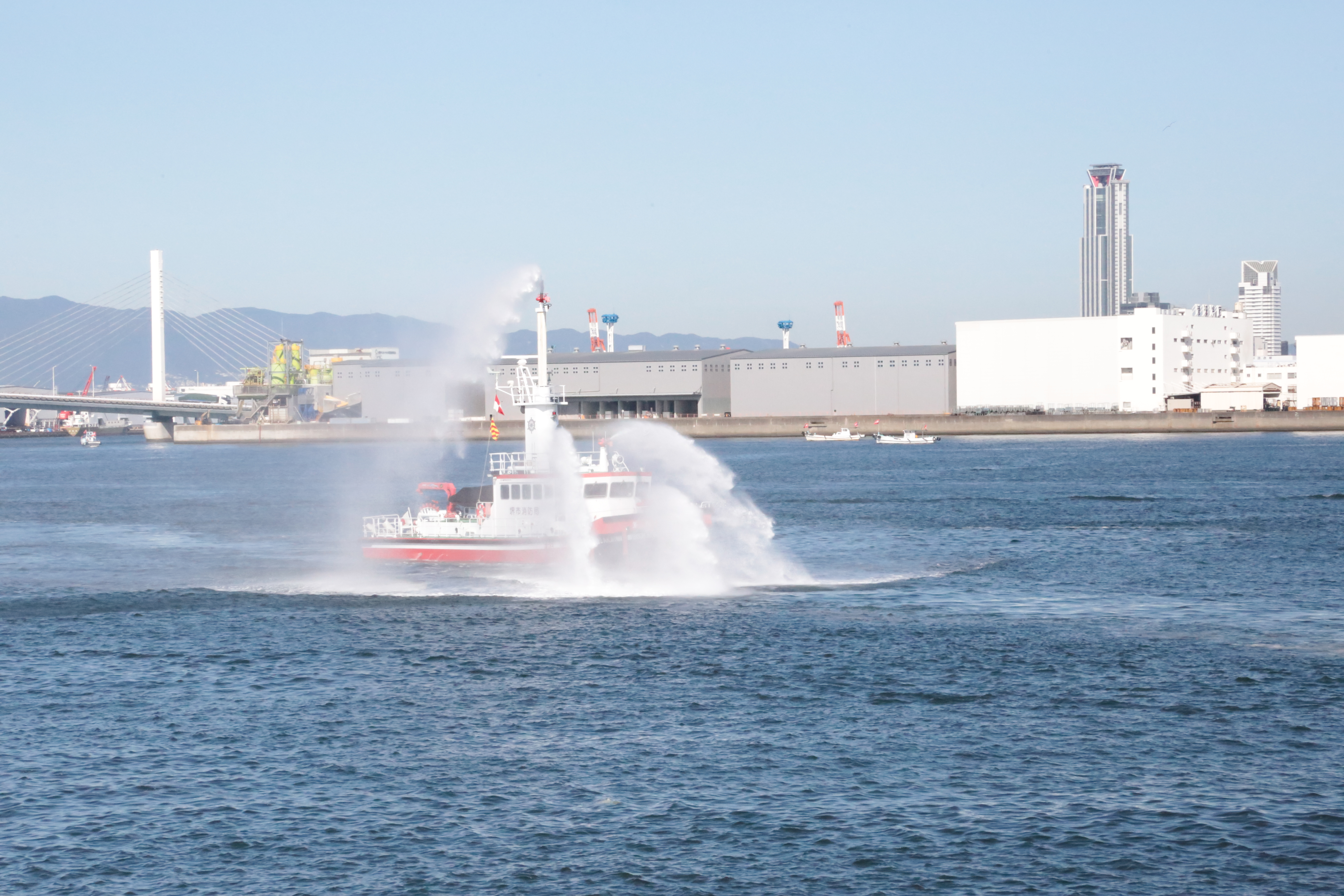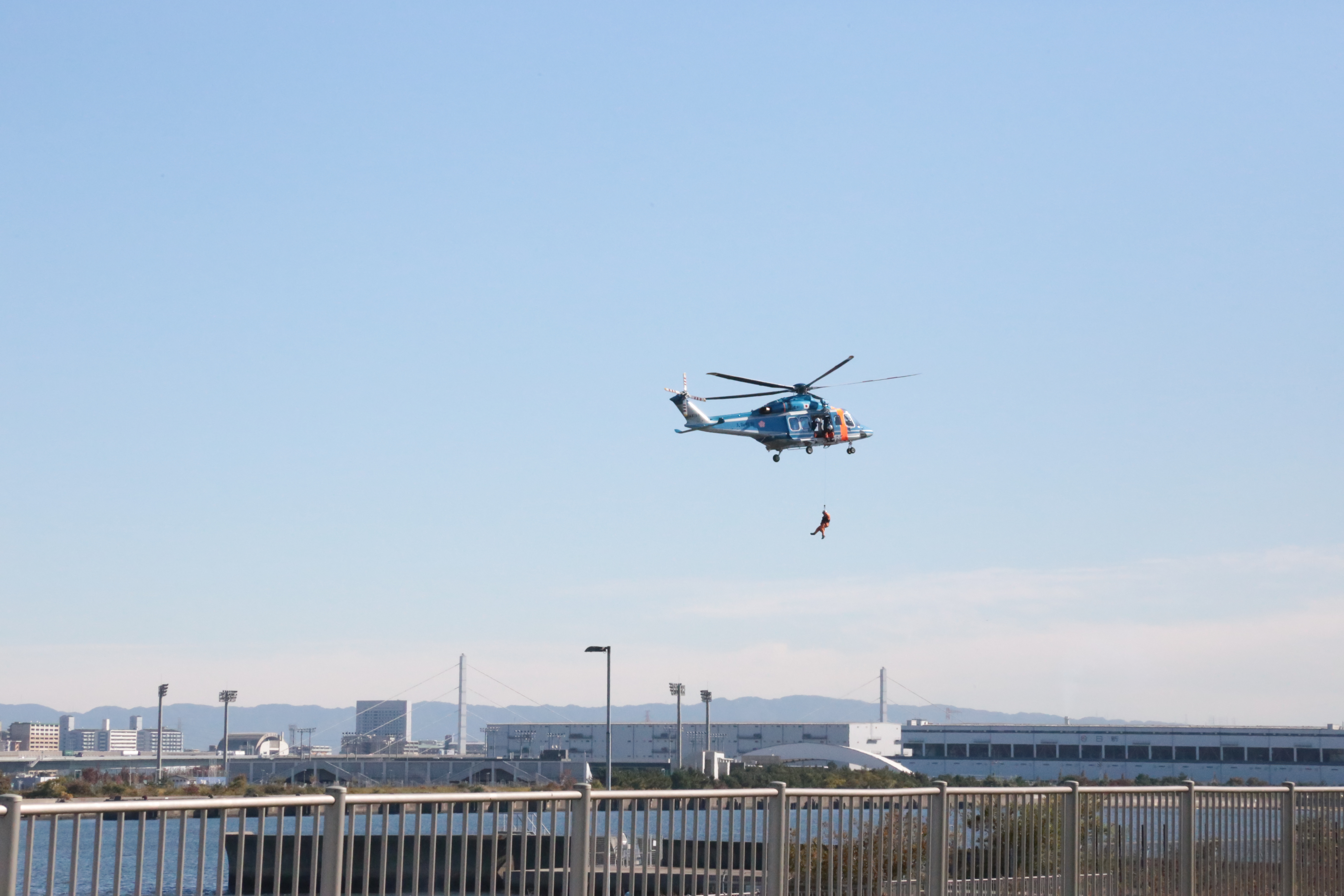 それ以外には、大阪府警のヘリコプター「おおわし」による津波避難訓練として災害現場の被害者救助活動や、海上保安庁・堺市消防などによる陸・海からによる大規模な消火放水訓練、陸上自衛隊による災害現場の避難・捜索訓練などが様々な災害想定の元で大々的に催されました。