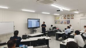 今回のテーマは「緊急出動までのBCPを一緒に考える」とし、研修と机上訓練を行いました。当社のスタッフによるBCP(事業継続計画)研修を行った後、実際に発災から緊急出動まで何をするのか、何が必要なのか等を参加者に質問し、災害時を想定した対応等を話し合い、BCPの改善点などの洗い出しを行いました。 その後、当社営業部長中井から「昨今の災害対応の実績」や「ユーザーを守る戦略」についてもお話しさせて頂きました。