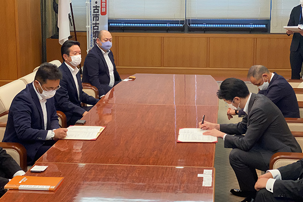 15時からの締結式には、永藤市長、松本危機管理監、鈴鹿防災課長にご列席いただき、永藤市長と角谷社長が協定書へ署名した後、協定書を交換し、滞りなく式は終了いたしました。