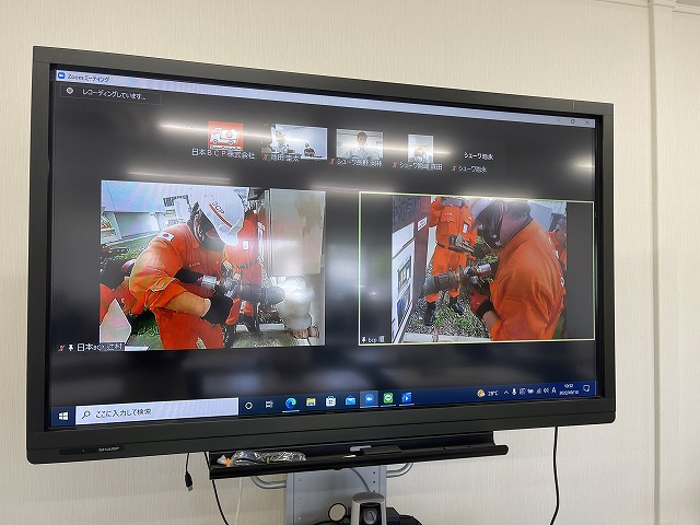 現場の模様は、Zoomを通じて、災害対策本部・シューワ主要支店へ配信。現場指揮者の解説を交え、作業手順の確認など有事に備えた情報共有を行い、訓練を終了いたしました。