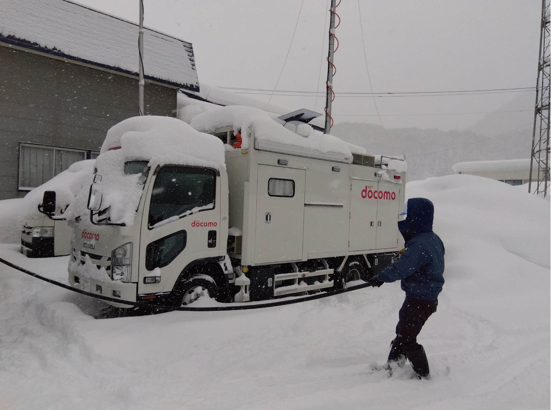 現地では連日の降雪や視界不良を伴う厳しい気象条件の中においても、「安全第一」を徹底しながら、移動基地局への燃料配送・給油を確実に実施しております。地域住民の皆様にとって欠かすことのできない通信インフラの安定確保に、引き続き全力で取り組んでまいります。